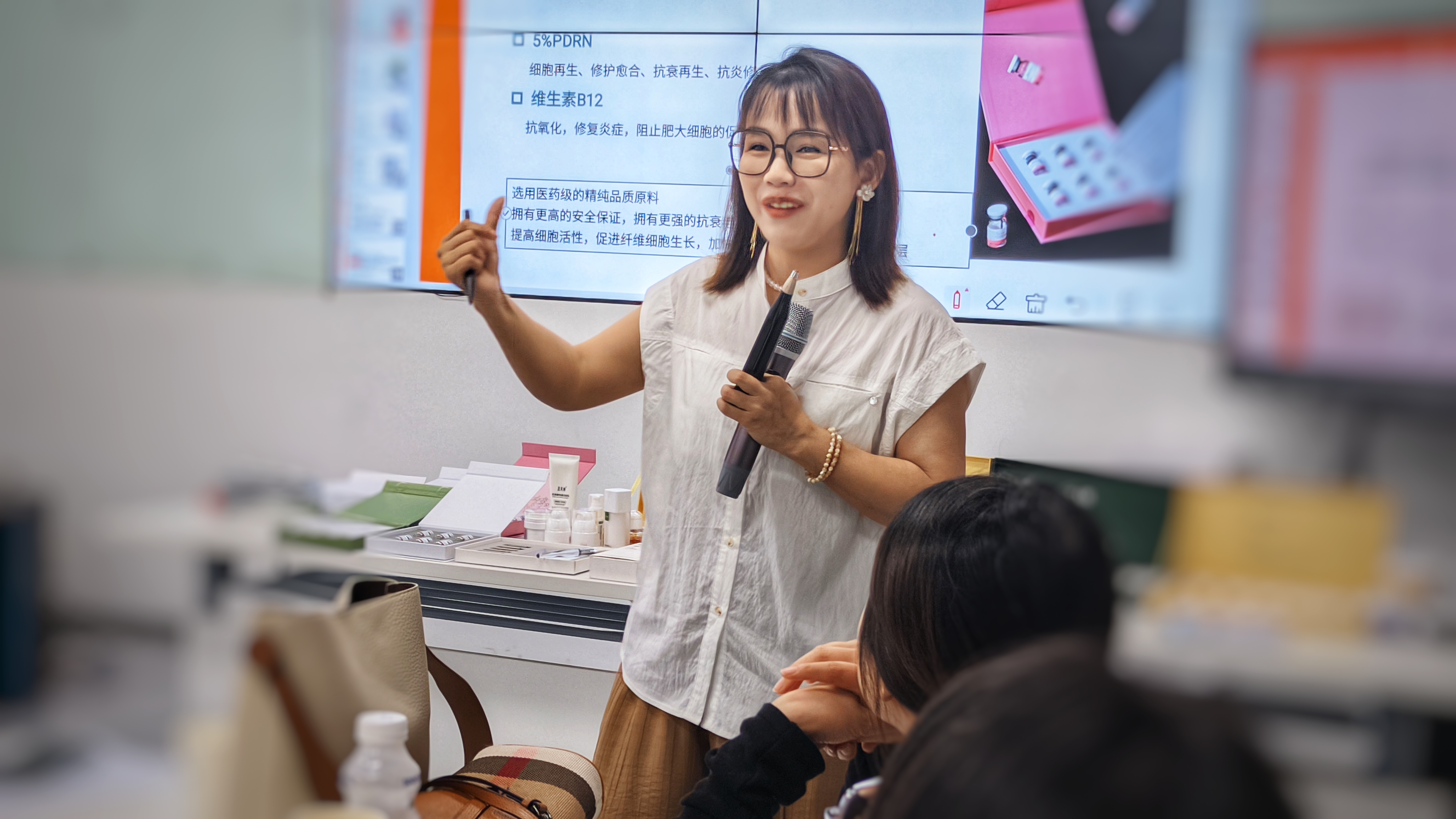 另一位来自宜宾的美容师也表达了类似的感受:“娅琼老师的讲解非常细致,她能够针对每种肌肤问题给出具体的解决方案和复配方案,这对于我们来说非常宝贵。这次学习让我对美肤行业有了更深入的了解,也为我今后的工作提供了很多灵感。”